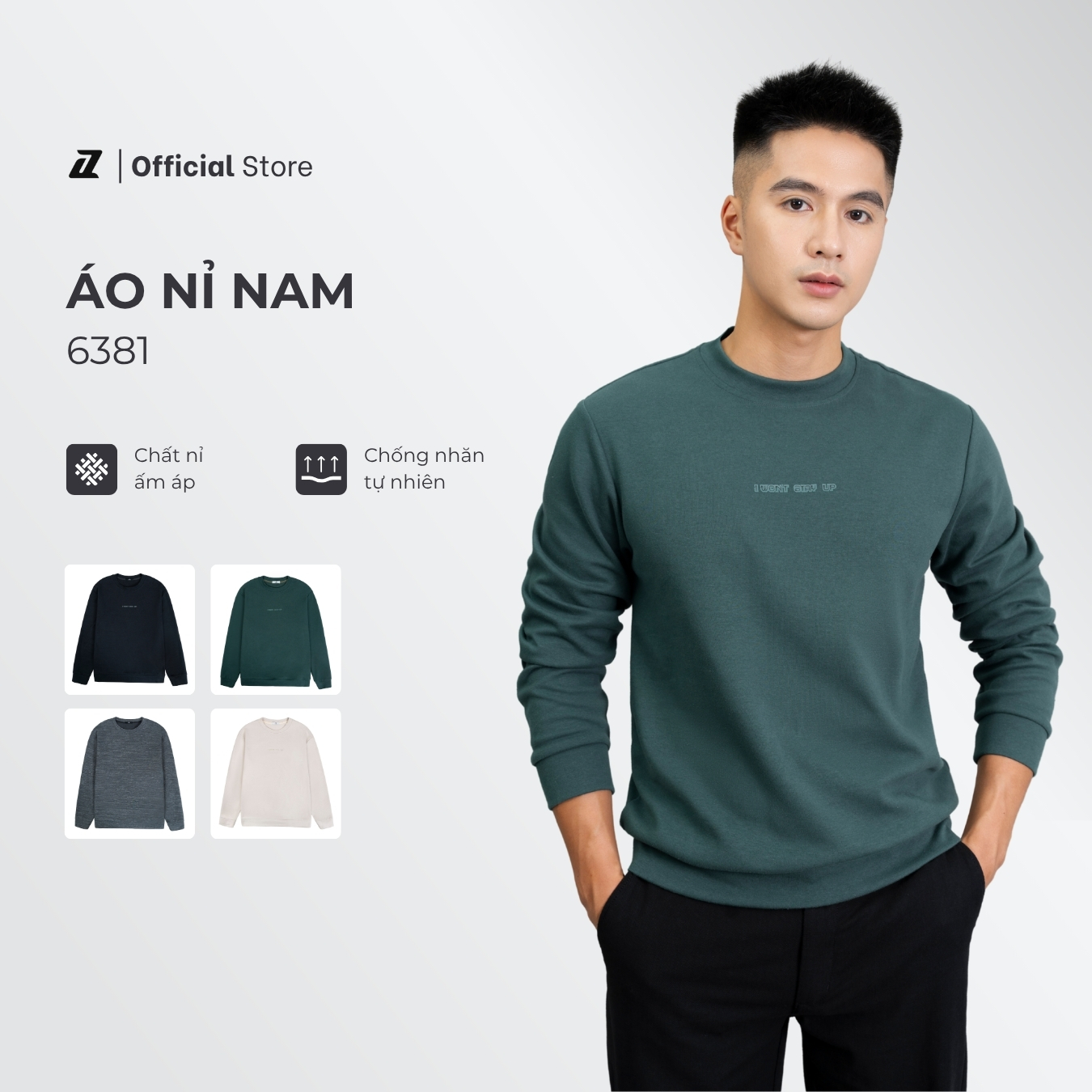Áo nỉ nam AUZED cổ tròn, in cao su trước ngực, giữ nhiệt thoải mái hằng ngày 6381