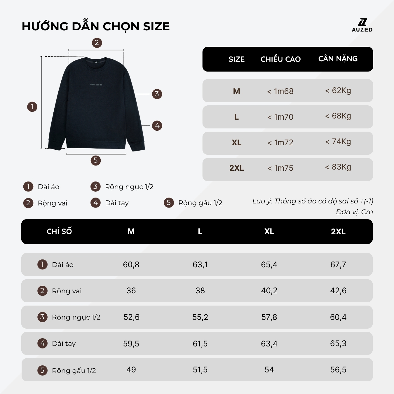 👉 Bảng size chỉ mang tính tham khảo, inbox AUZED để được tư vấn kỹ hơn.