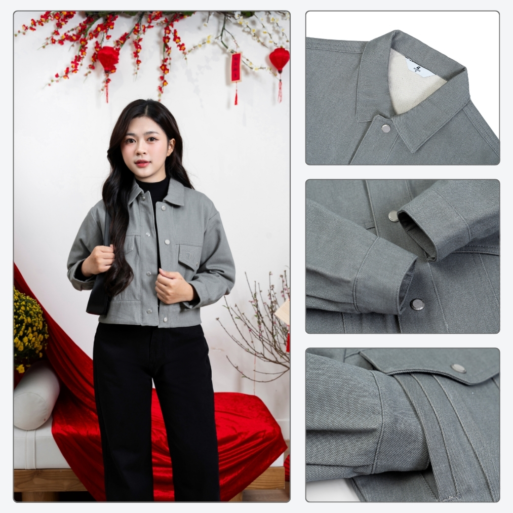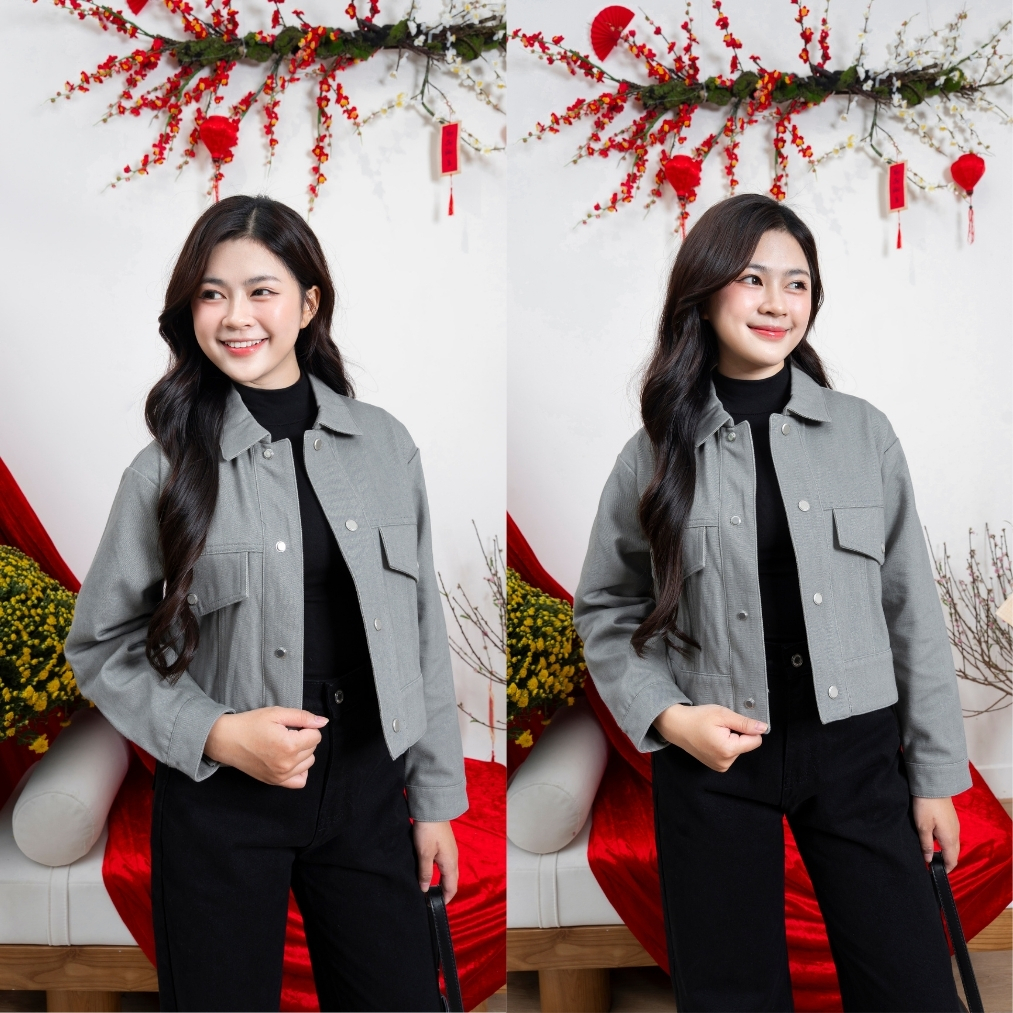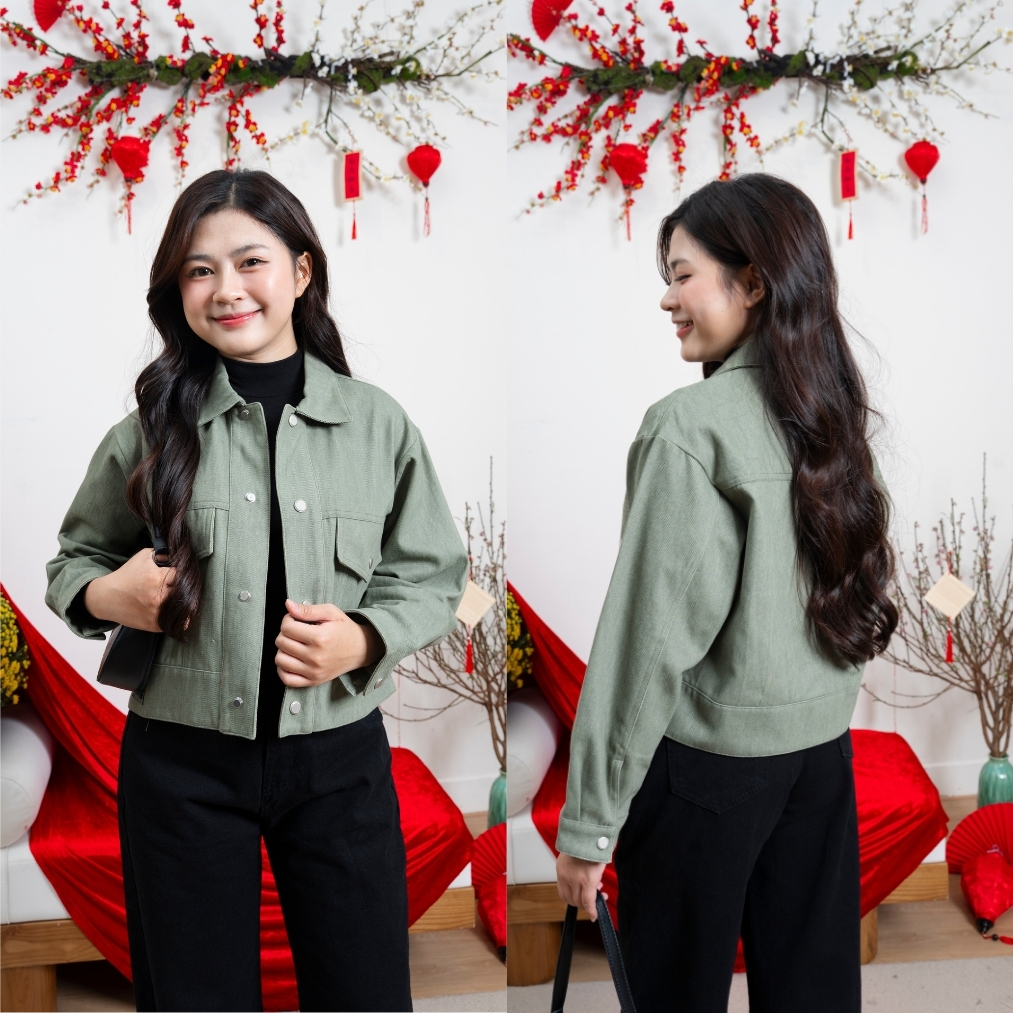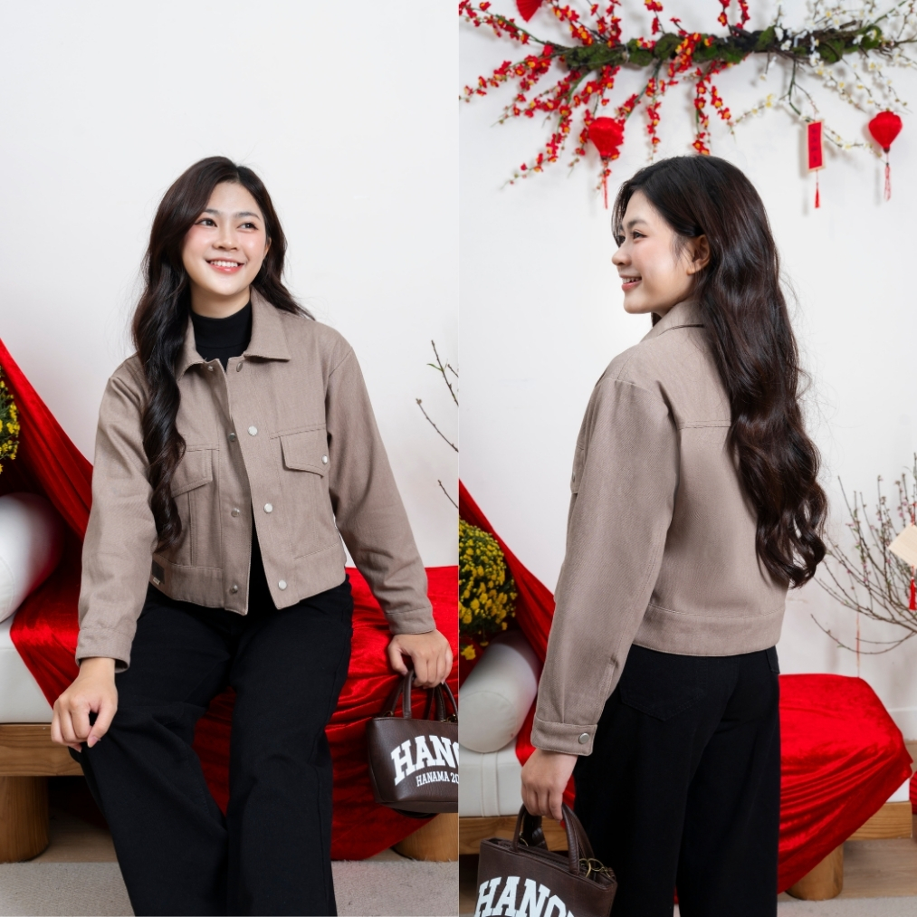 [MỚI] Áo khoác kaki nữ cổ bẻ Auzed dáng lửng 6393