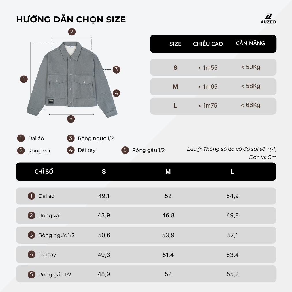 👉 Bảng size chỉ mang tính tham khảo, inbox AUZED để được tư vấn kỹ hơn.