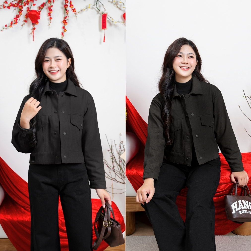 [MỚI] Áo khoác kaki nữ cổ bẻ Auzed dáng lửng croptop cá tính, chất liệu dày dặn 6393